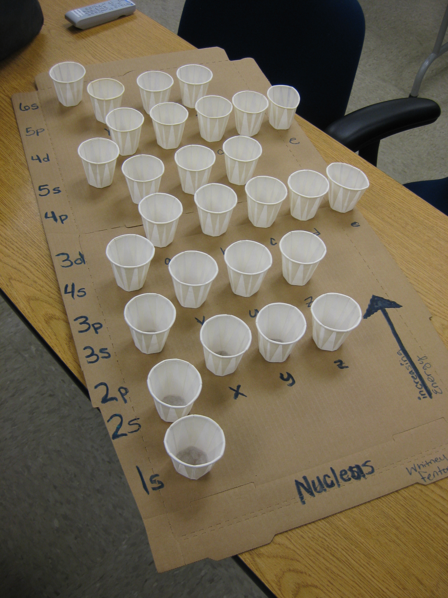 The Doo-Wop Board allows you to visualize the electron arrangement of elements up to number 48 (Cadmium.) We've put together a printable diagram which will allow you to see the arrangement of electrons for elements 49 (Indium) and above! Click here for the file.
